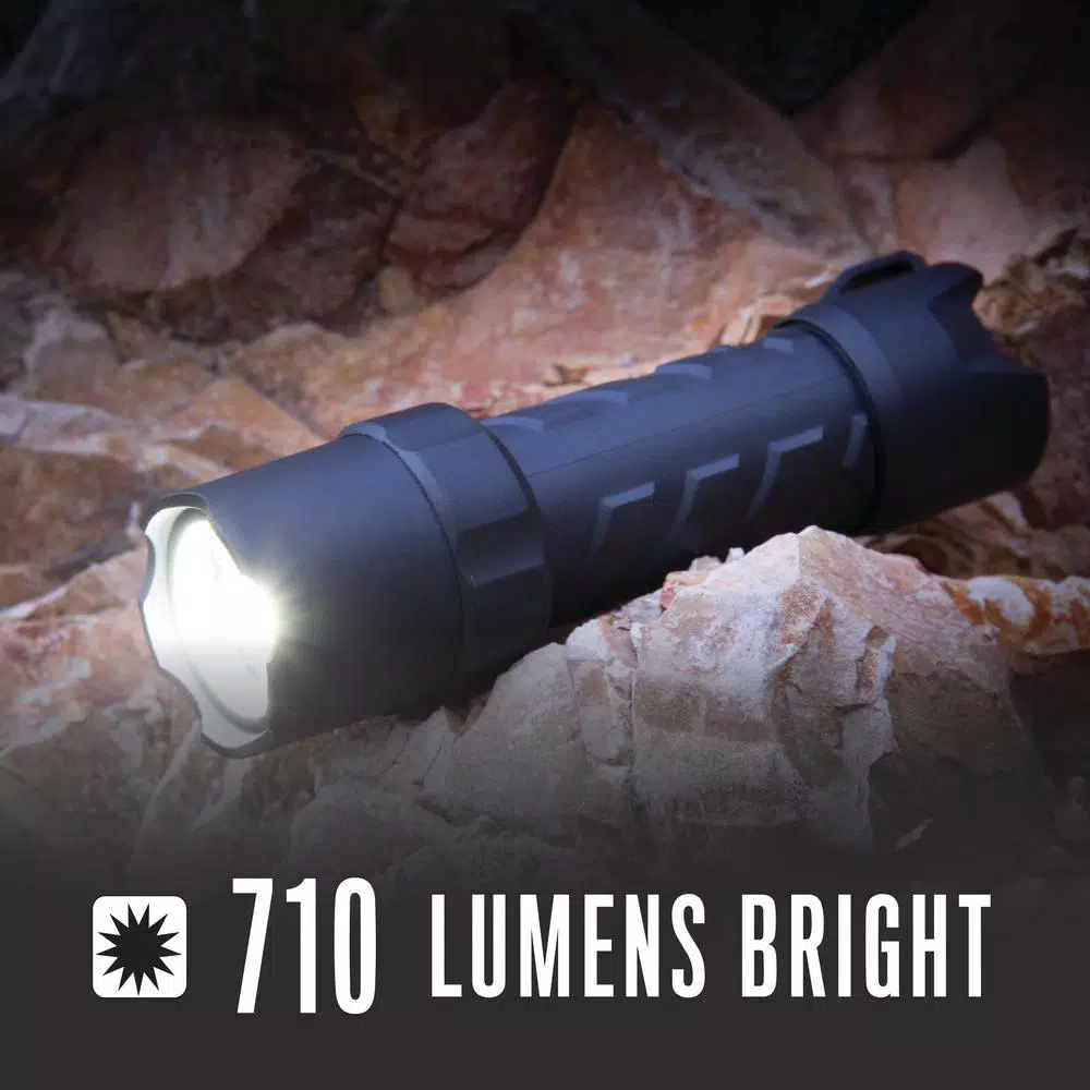 - SPECS: Light Output: 710 lumen (high), 73 lumens (low). Beam Distance: 247 meters (high), 78 meters (low). Runtime: 2 hours 15 minutes (high), 40 hours (low)