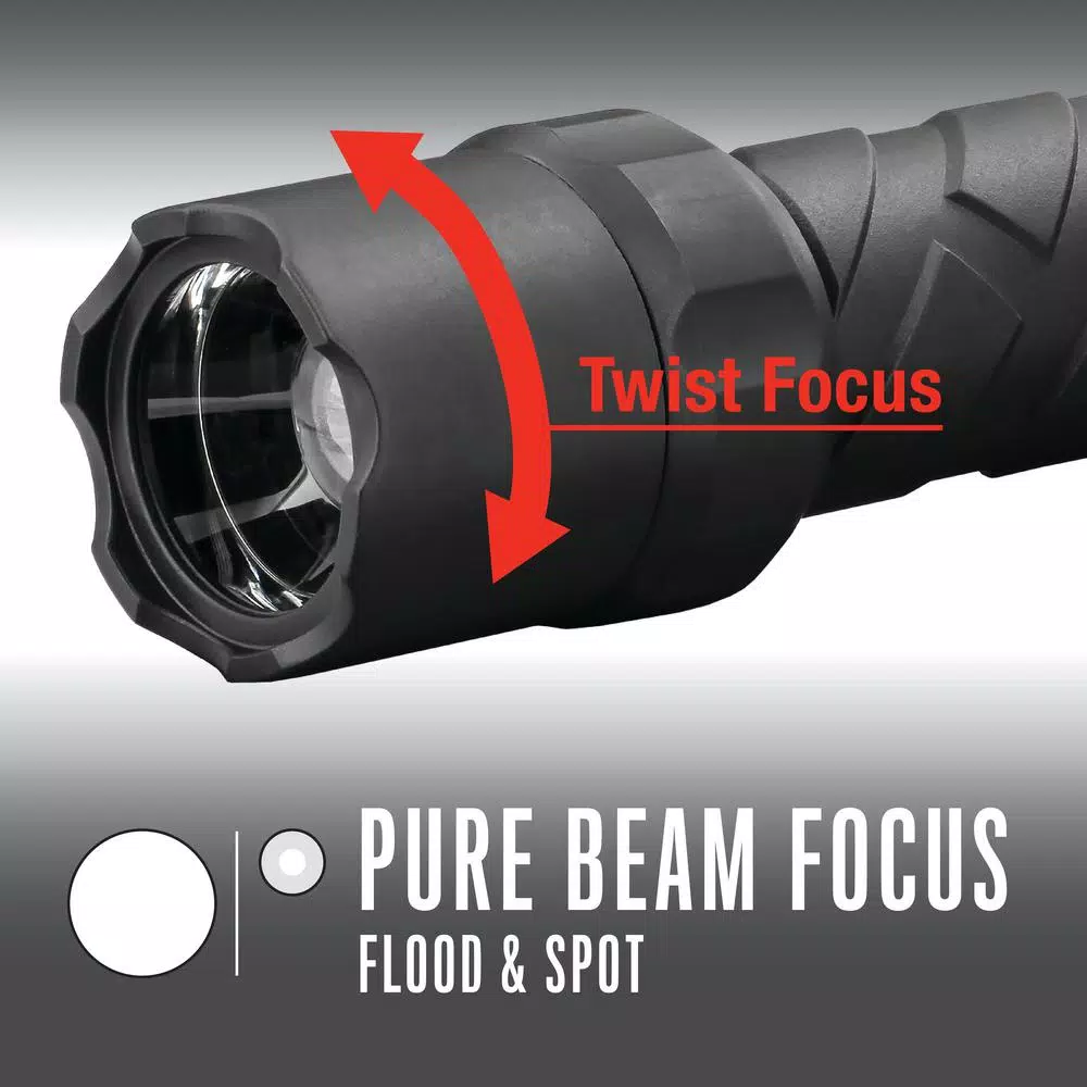 - TWIST FOCUS SYSTEM: Allows users to shape the light beam from Flood to Spot beams by simply twisting the head of the flashlight