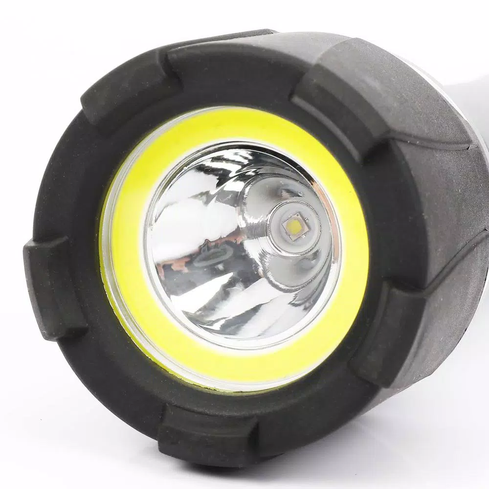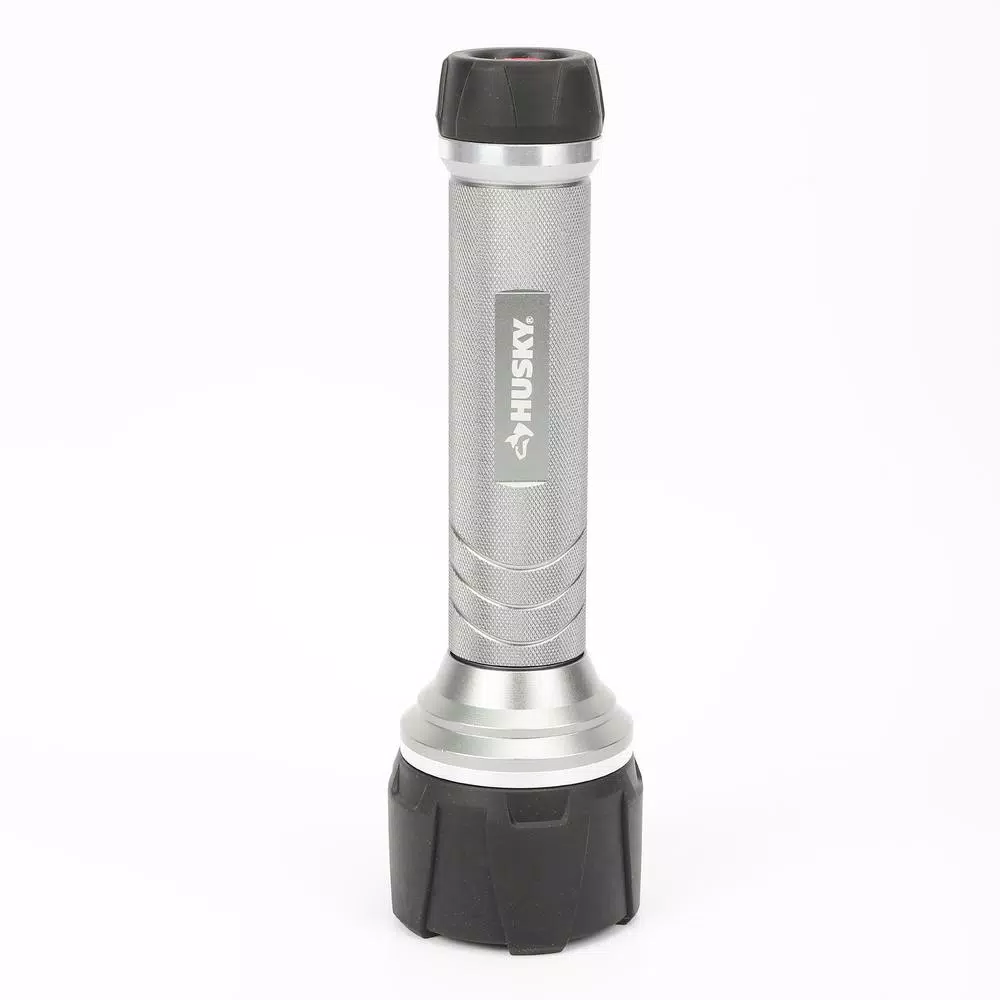 The Husky 700 Lumen Dual beam unbreakable Flashlight features durable aluminum. With high power LED and COB chip for wide range lighting. The light provides 3 modes of operation, spot, flood, both spot and flood. Drop test rated from 30 ft. and waterproof to 1 m. It is with super bright LED and Energizer Alkaline battery is included, up to 700-Lumen.