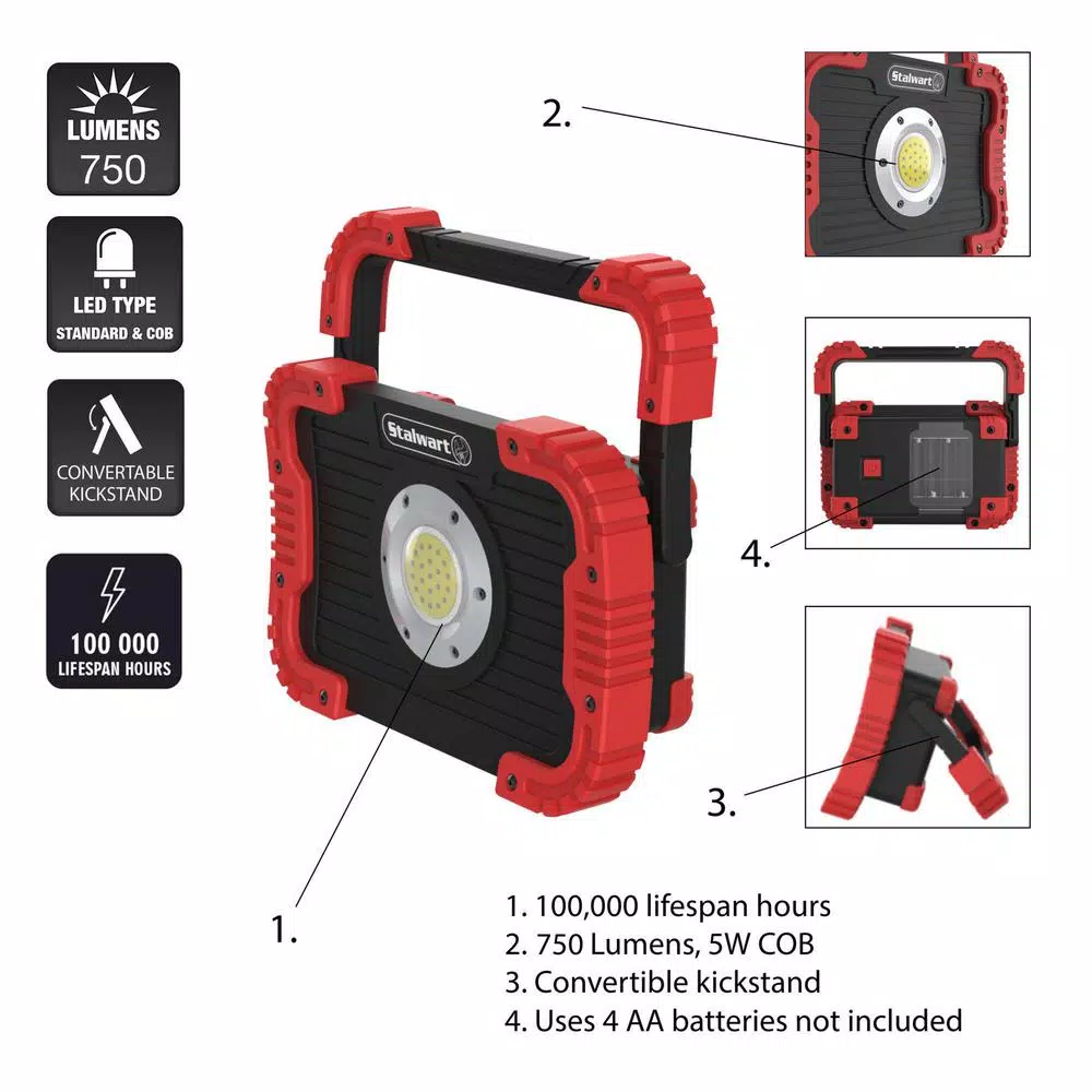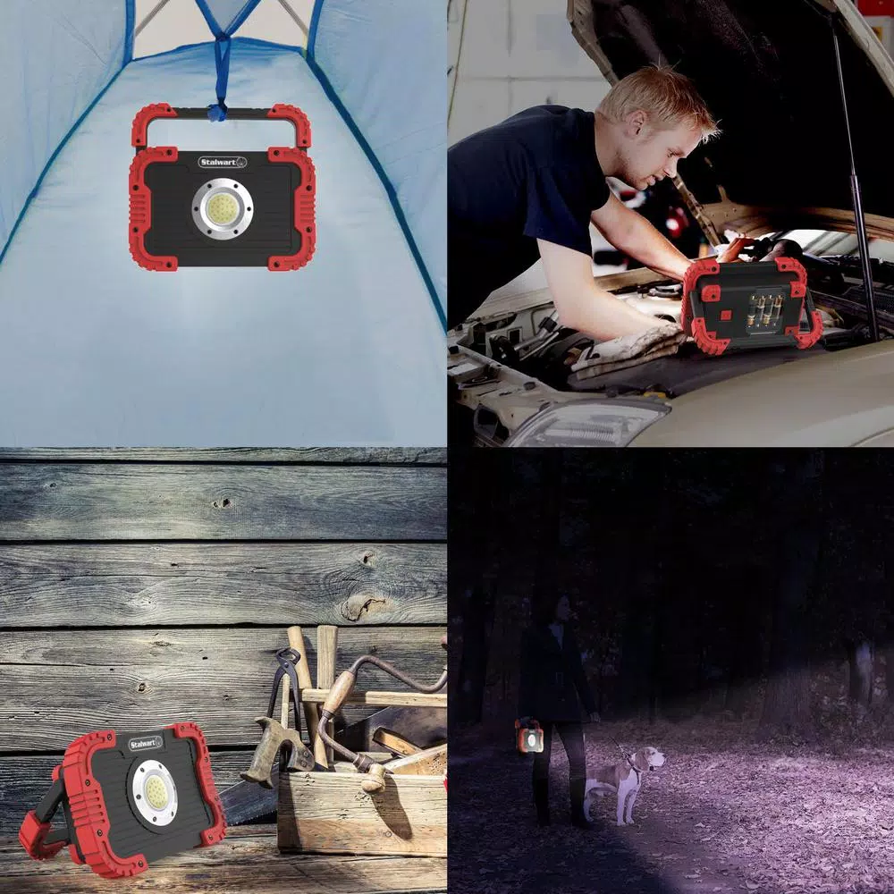 Easily work hands free with the long-lasting and versatile COB LED Work Light with Rotating Handle by Stalwart. The attached handle allows for easy portability and allows it to be carried, hung or even stand on a workbench or table. The Stalwart Work Light has a COB LED life span that lasts for up to 100,000-hours, providing ultimate reliability whether you are working in the garage, camping, hiking and more.
