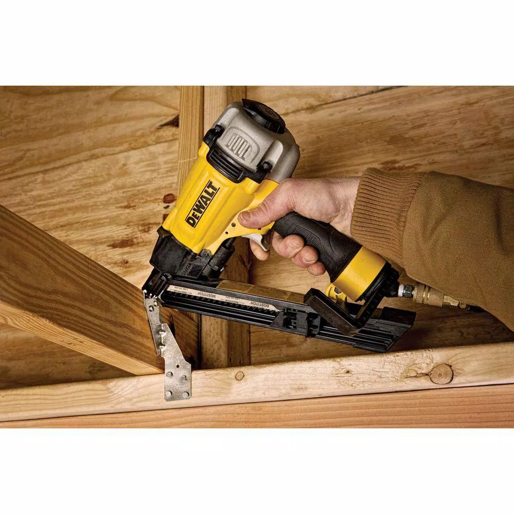 At only 10.5 in. tall this compact metal connector Nailer easily fits into tight spaces around the jobsite. Its easy nail placement makes hanging metal connectors fast and easy. Its durable rafter hook ensures it stays put when you need both hands free.
