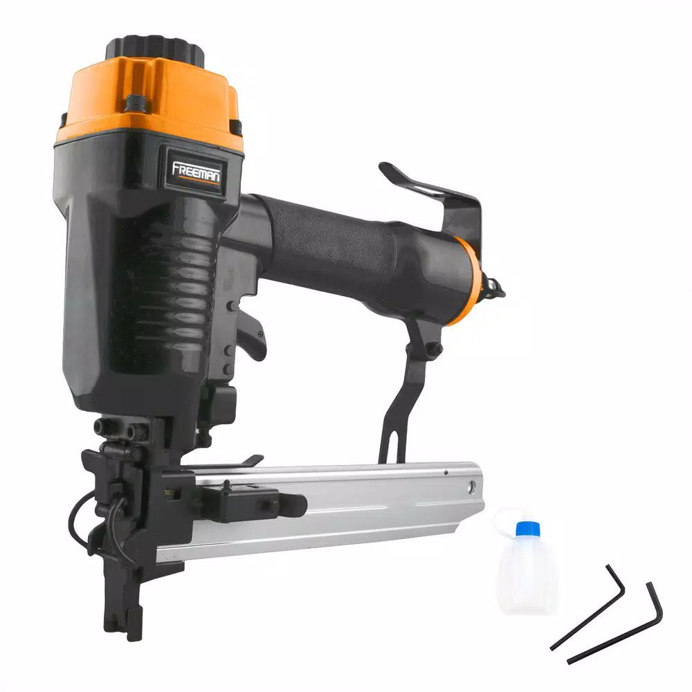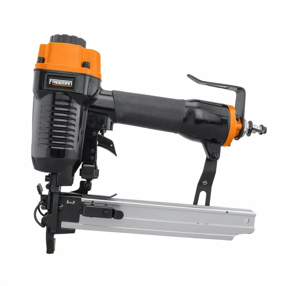 The Freeman PFS16 Pneumatic 16-Gauge 1 in. Fencing Stapler is specifically built to work on projects such as livestock fencing, pet enclosures, vineyard trellising, snow control fencing, electrified single wire with insulation, and other mesh and woven applications. This air powered staple gun is designed for sequential firing and is compatible with 16-Gauge fencing staples from 3/4 in. to 1 in. With a comfort grip handle to reduce impact to hands, this lightweight and rugged stapler is ideal for DIYers and professional contractors to use over long periods of time. A 1-piece drive blade and anodized aluminum cylinder and magazine extend the life of this durable tool. A 360° adjustable exhaust directs air away from your face, and changing the depth of the fencing staples is also accomplished quickly and without tools by turning a wheel near the trigger. Other features include a quick jam release for fast and easy drive blade access when a fastener gets jammed, and a simple pull-back pusher to avoid delays when reloading fencing staples. The Pneumatic 16-Gauge 1 in. Fencing Stapler will increase productivity around the home and at the job site, and is covered by Freeman’s 7-Year Limited Warranty and 90-Day Wearable Parts Warranty.