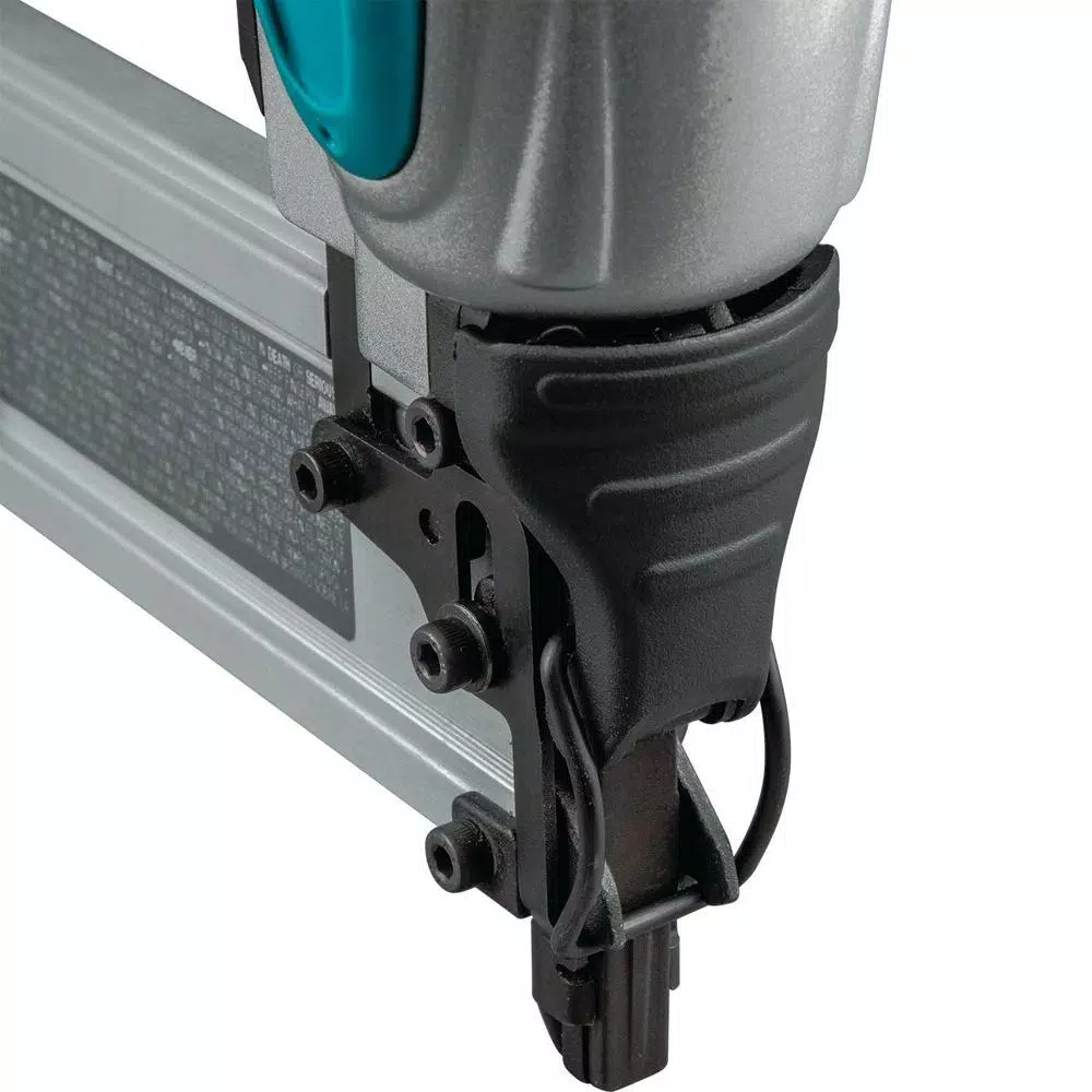 The Makita 18-Gauge 2 in. Brad Nailer (model AF506), features a durable and compact design with ease-of-use features including a narrow-nose design that makes it ideal for a wide variety of finish applications. The AF506 can operate from 70 psi to 120 psi and drives a range of 18-Gauge brad nails from 5/8 in. to 2 in. and has a magazine capacity up to 100 nails. The cast-and-machined nose piece is engineered for precise contact with the workpiece, with a non-marring rubber nose engineered to protect the work surface. Additional features include an ultra-narrow nose design that is ideal for fastening in confined areas and a convenient tool-less depth adjustment dial that can be set for a wide variety of finish applications. For added convenience, the multi-directional exhaust port rotates 360° to direct exhaust air away from the user. The AF506 is engineered for driving a range of 18-Gauge brad nails from 5/8 in. to 2 in. into hard or soft wood applications and is ideal for trim work, baseboard and crown molding installation, flooring and other woodworking applications.