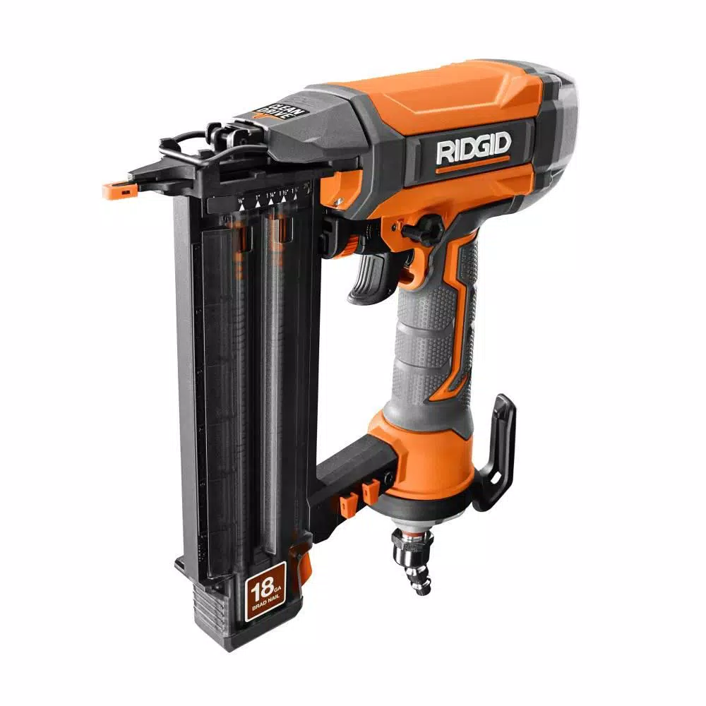 - Includes: (1) 18-Gauge 2-1/8 in. Brad Nailer with CLEAN DRIVE Technology, tool bag, sample nails, and an operator’s manual, (1) R5025LF 1/4 in. 50 ft. Lay Flat Air Hose with 360° Swivel Fittings