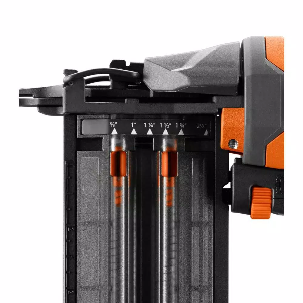 RIDGID introduces the 18-Gauge 2-1/8 in. Brad Nailer with CLEAN DRIVE Technology, Tool Bag, and Sample Nails with 1/4 in. 50 ft. Lay Flat Air Hose. This 18-gauge brad nailer features CLEAN DRIVE Technology, which boasts 17X more consecutive perfect drives than the competition. CLEAN DRIVE Technology means you can spend less time fixing and more time working. With registration, this nailer is backed by the Industry’s Only Lifetime Service Agreement. Included with the 18-Gauge 2-1/8 in. Brad Nailer are a tool bag, sample nails, and an operator operator’s manual. The 1/4 in. 50 ft. Lay Flat Air Hose is everything you’ve ever wanted from an air hose. The Lay Flat Hose has a unique lay flat design that allows it to keep its shape, is kink resistant, and is non-tangling. At just over 3 lbs., its lightweight design makes it easy to maneuver around your work space. Heavy duty 360° swivel fittings with bend restrictors make the usual weakest point, one of this hose’s strengths. The durability of the bend restrictors provide extra support to increase the life of the hose. Unlike other hoses, the Lay Flat Hose is able to flex in cold weather, which allows you to keep working regardless of your climate. It’s 100% field repairable which saves time and money in case of an accidental tear. With a 300 Max PSI capacity, the Lay Flat Hose can be used for heavy duty applications. The 1/4 in. 50 ft. Lay Flat Air Hose is warranted against defective parts and labor.