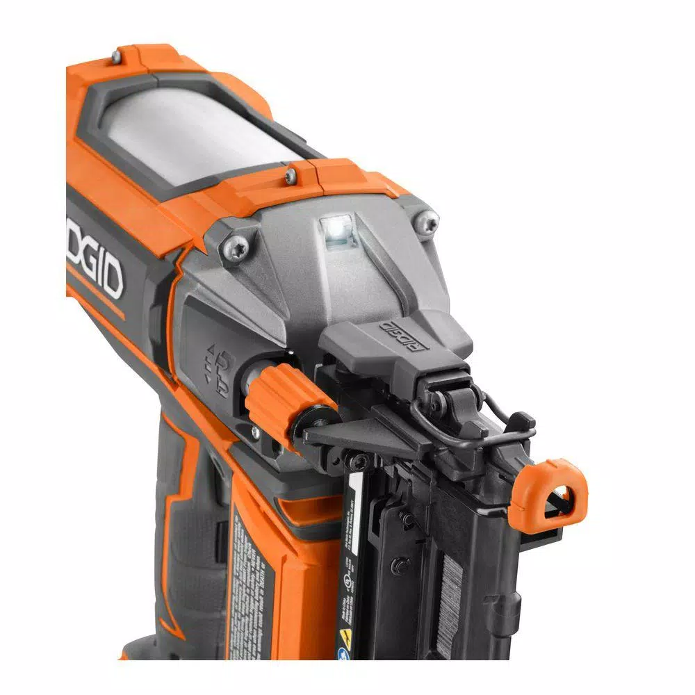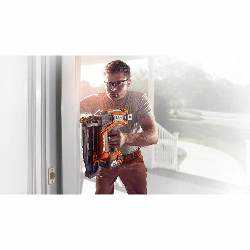 RIDGID introduces the 18-Volt Lithium-Ion Cordless Brushless HYPERDRIVE 16-Gauge 2-1/2 in. Straight Finish Nailer with 2 Ah Battery, Sample Nails, Charger, Belt Clip, and Tool Bag. RIDGID HYPERDRIVE offers you all the power of a pneumatic nailer in a cordless tool. With no compressor, no hose, and no gas cartridge, this 16-gauge straight finish nailer provides a faster setup and easier maneuvering on the job site. The RIDGID HYPERDRIVE 16-Gauge 2-1/2 in. Straight Finish Nailer drives 16-gauge nails from 3/4 in. to 2-1/2 in. This kit also includes the RIDGID 2 Ah Lithium-Ion Battery and 18-Volt Charger. The 2.0 Ah battery gives you twice the run time and has twice the life compared to standard lithium-ion batteries. The 18-Volt charger features Rapid Charge Time, Smart Charging, Cold/Hot Warning, and Energy Save Mode. This kit is also backed by the RIDGID Lifetime Service Agreement providing FREE seals, FREE pistons, and FREE driver blades – For LIFE. The 18-Volt Lithium-Ion Cordless Brushless HYPERDRIVE 16-Gauge 2-1/2 in. Straight Finish Nailer includes a 2 Ah Lithium-Ion Battery, an 18-Volt Charger, sample nails, a belt clip, a tool bag, and an operator’s manual.