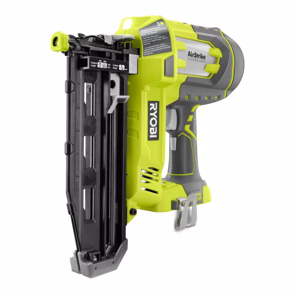 RYOBI introduces the 18-Volt ONE+ Lithium-Ion Cordless AirStrike 16-Gauge Straight Finish Nailer (Tool-Only) with Sample Nails. This 16-Gauge Straight Finish Nailer features AirStrike Technology, which eliminates the need for noisy compressors, bulky hoses, or expensive gas cartridges. This means faster setup and easier maneuvering on the job site. The RYOBI ONE+ AirStrike 16-Gauge Straight Finish Nailer drives 16-gauge finish nails ranging from 3/4 in. to 2-1/2 in. long. Best of all, this it’s a part of the RYOBI ONE+ System of over 175 Cordless Tools that all work on the same battery platform. Backed by the RYOBI 3-Year Manufacturer’s Warranty, this nailer includes a belt clip, sample finish nails, and an operator’s manual. Battery and charger sold separately.
