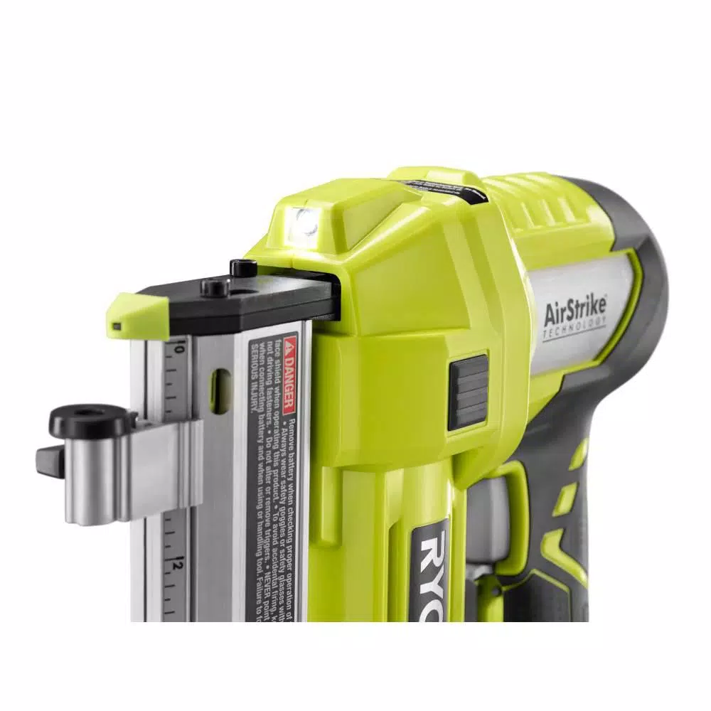 RYOBI introduces the 18-Volt ONE+ Lithium-Ion Cordless AirStrike 23-Gauge 1-3/8 in. Headless Pin Nailer Kit with 1.5 Ah Battery and Charger. This headless pin nailer drives 1/2 in. to 1-3/8 in. pins and can shoot up to 3500 pin nails per charge with a 4.0 Ah LITHIUM+ 18-Volt battery (not included). The dry-fire lockout protects your pin nailer and extends its life. The double-action trigger design allows for convenient, sequential driving and the included non-marring pads keep the work surface free of tool marks. The LED light optimizes vision throughout the job and GRIPZONE overmold adds comfort. Best of all, this kit is part of the RYOBI ONE+ System of over 175 Cordless Tools that all work on the same battery platform. The ONE+ AirStrike 23-Gauge 1-3/8 in. Headless Pin Nailer Kit is backed by the RYOBI 3-Year Manufacturer’s Warranty, and includes a 1.5 Ah battery, an 18-Volt charger, an edge guide for consistent placement of pins, a belt clip, sample nails, and an operator’s manual.