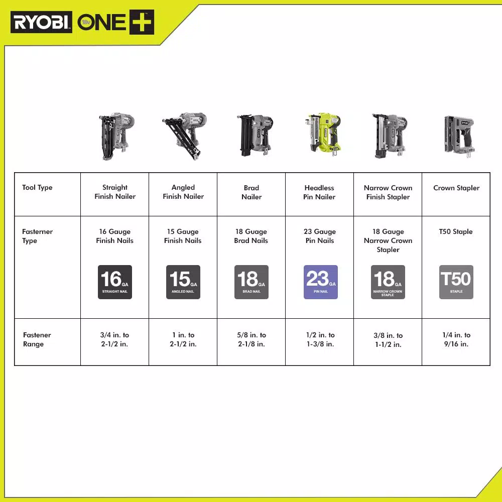 - Includes: (1) P318 18-Volt ONE+ AirStrike 23-Gauge 1-3/8 in. Headless Pin Nailer, sample pinners, a belt clip, an edge guide, and operator’s manual
