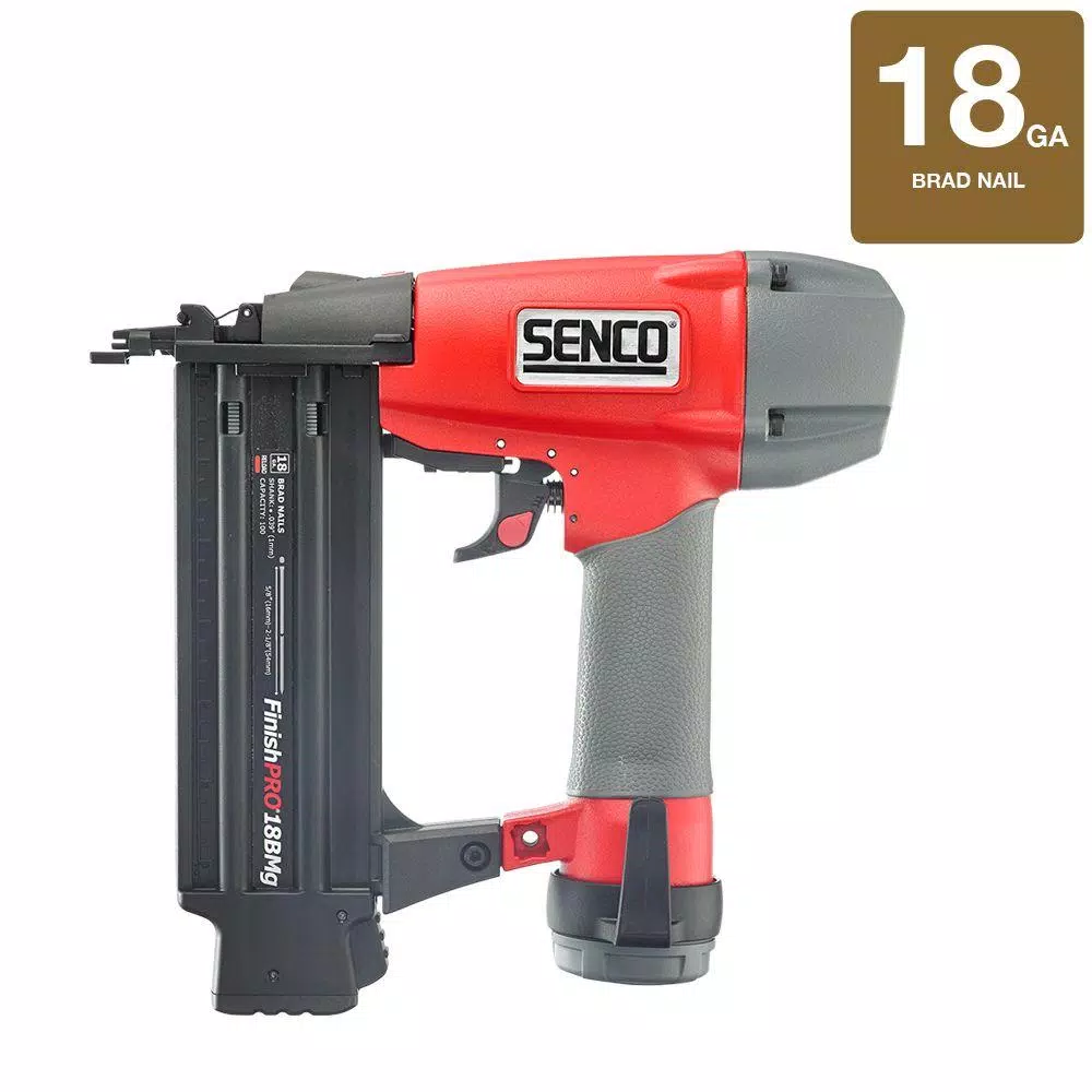 Senco’s FinishPro 18BMg is a full length 2-1/8 in. 18-Gauge brad nailer. It is designed to be extremely lightweight with a magnesium body, virtually maintenance free with its oil-free operation and is equipped with a nose mounted LED light to help illuminate dark work spaces. Additional features include a rotatable exhaust, rotatable belt hook, tool free depth of drive and a selectable trigger.