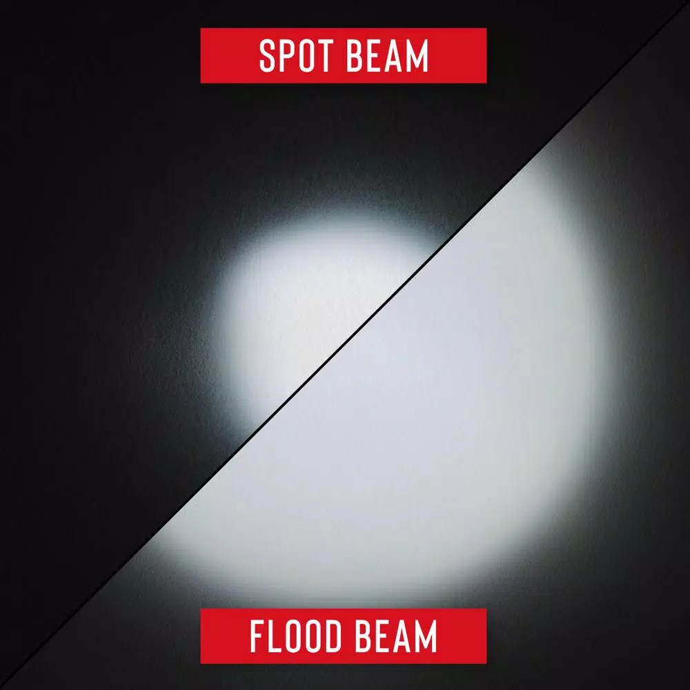 - Pure beam focusing optic: shift between a super wide flood beam or spot mode with transition halo at varying distances and brightness