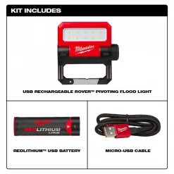 Handheld Spotlights Milwaukee 445 Lumens LED Rover Rechargeable Pocket Flood Light (2-Pack)