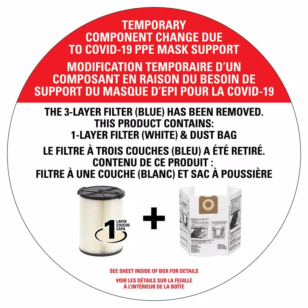 - Standard filter ideal for everyday dirt and debris such as sawdust, dirt and typical debris found in a basement, garage or vehicle
